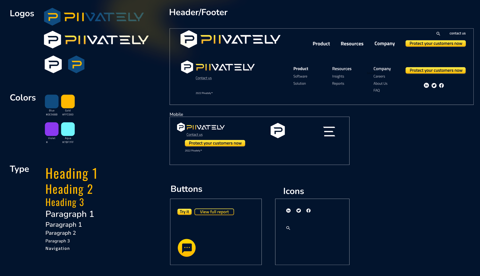 Utilizing the design system, my team and I created a cohesive, interactive prototype. My page of focus was “Product”. I created a stackable set of icons representing each layer of protection Piivately’s cybersecurity product offers. Icons as displayed on the home page: